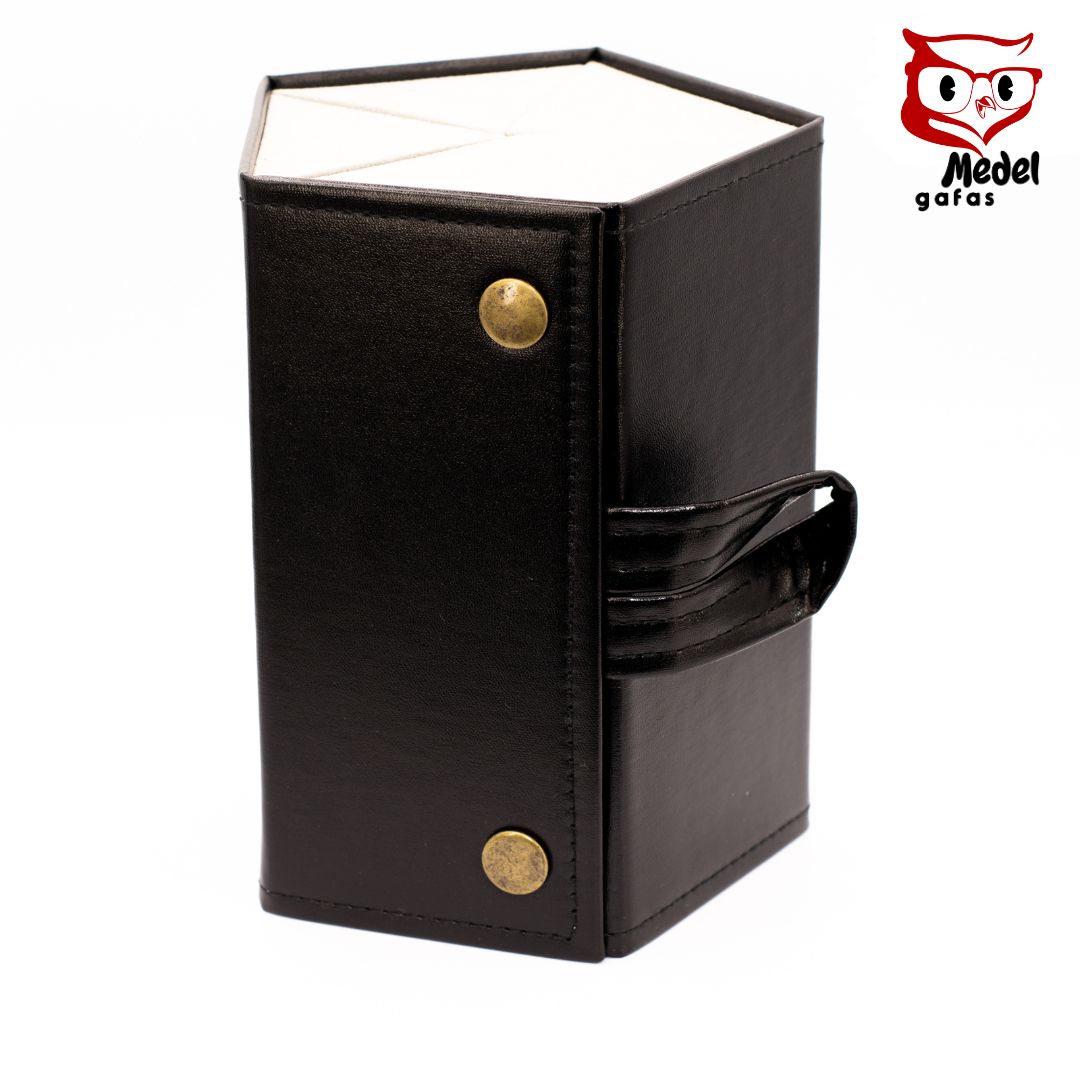 Volver a la tiendaEstuche de lujo donde caben 5 gafas, exterior en cuero sintético, interior en gamuza ideal para proteger varias gafas si sales de viaje