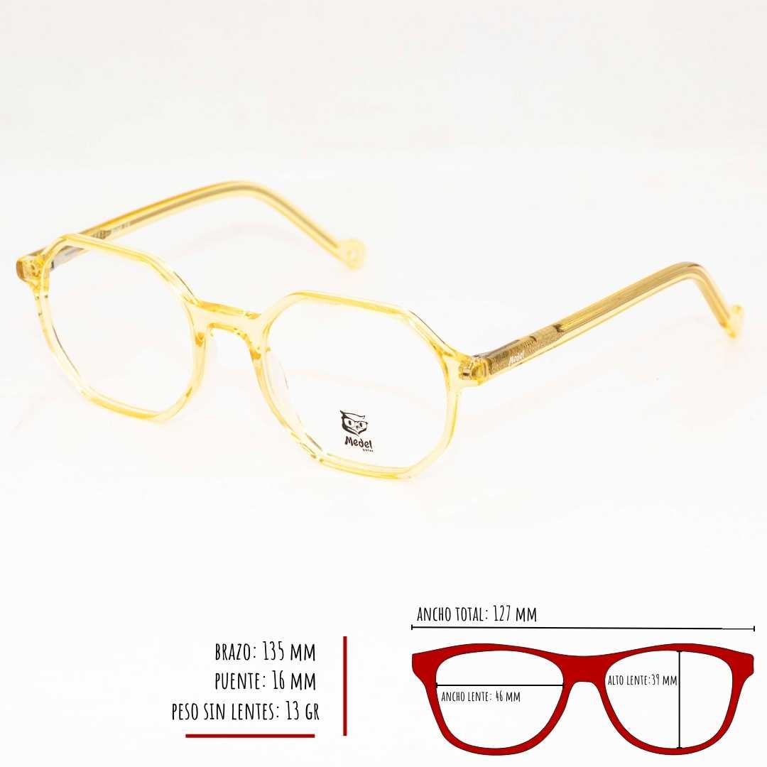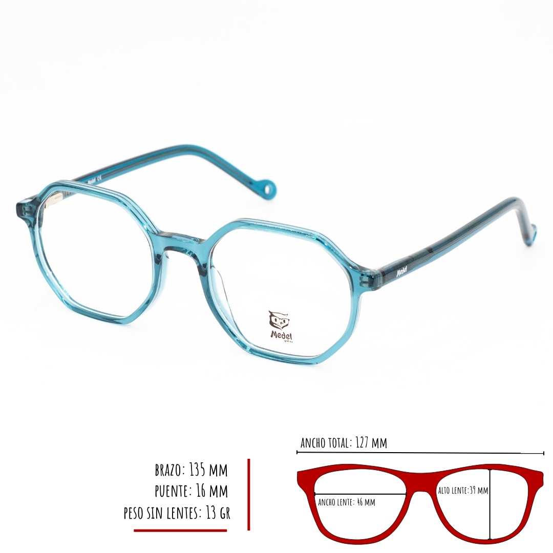 Volver a la tiendaMontura marca MEDEL, material acetato, bisagras con sistema flex de muy buenas calidad, ideal para lentes formulados, tamaño pequeño, para niños o adultos de rostro delgado, medidas 47-19-130