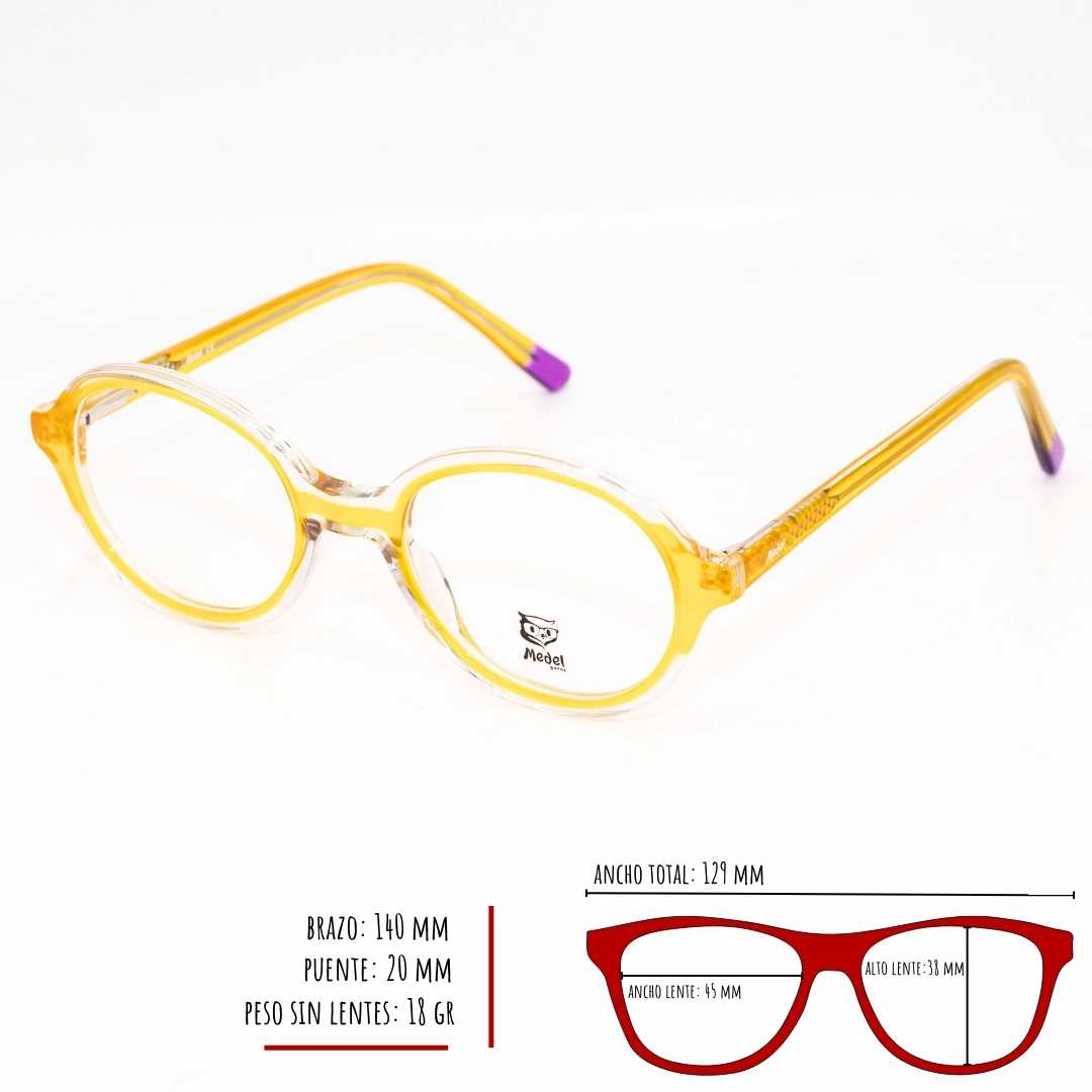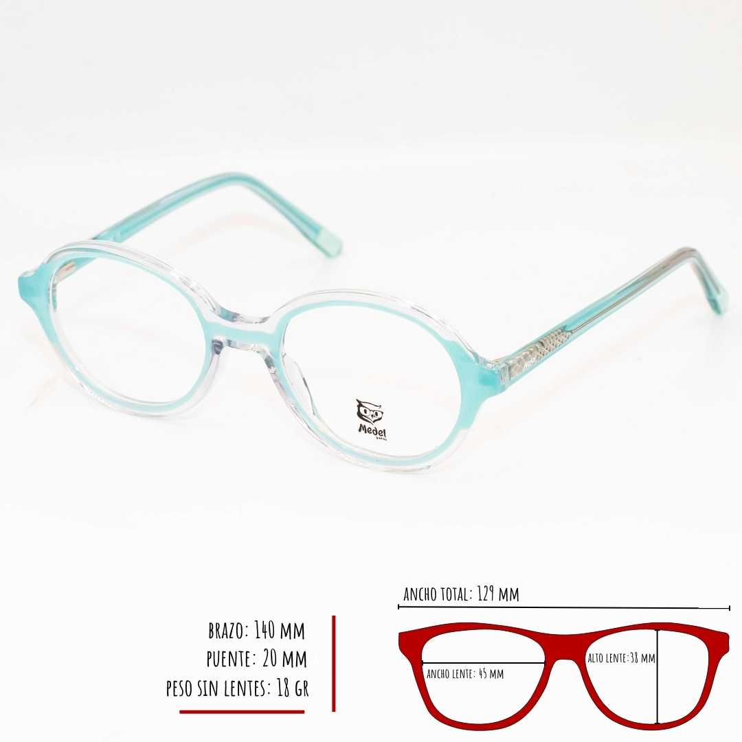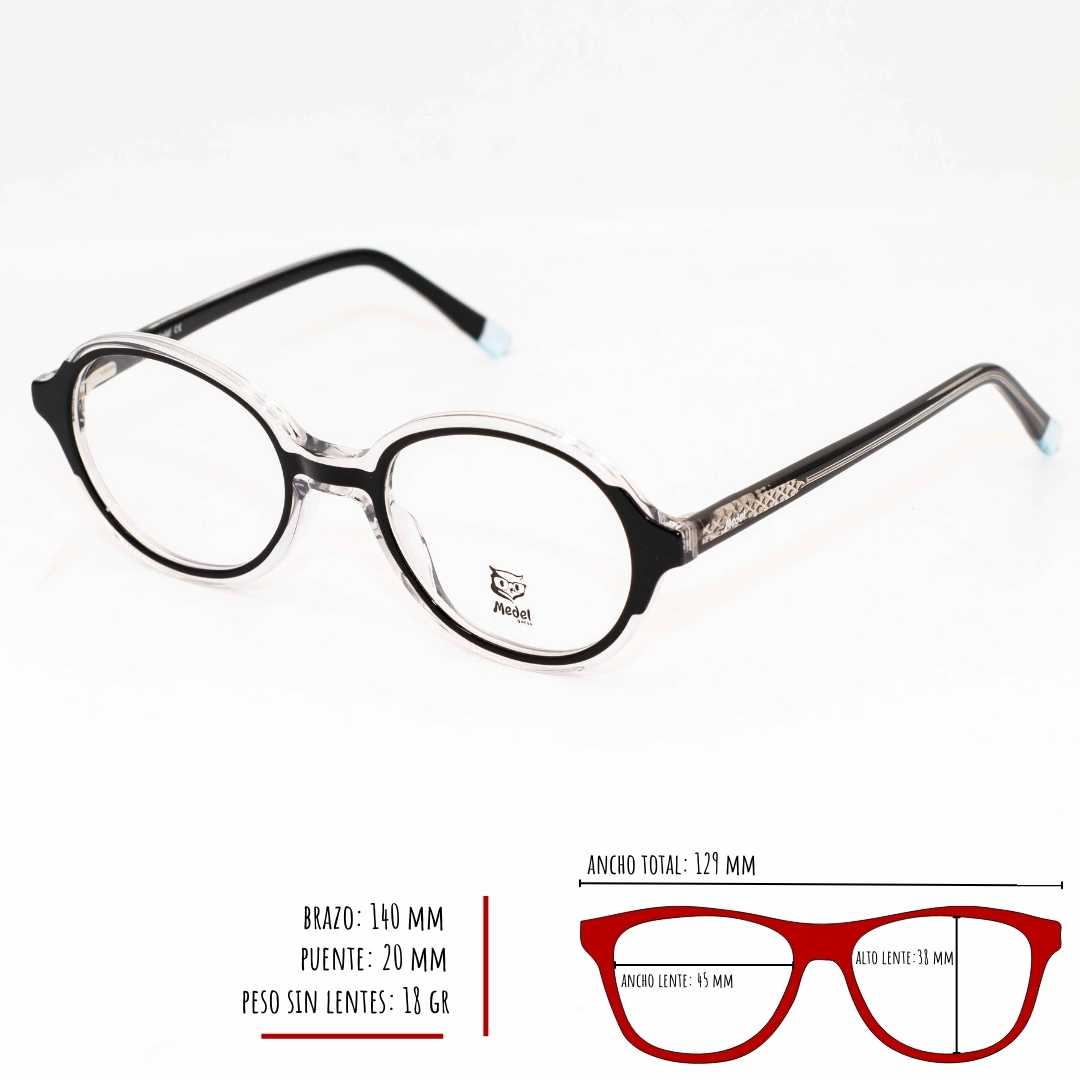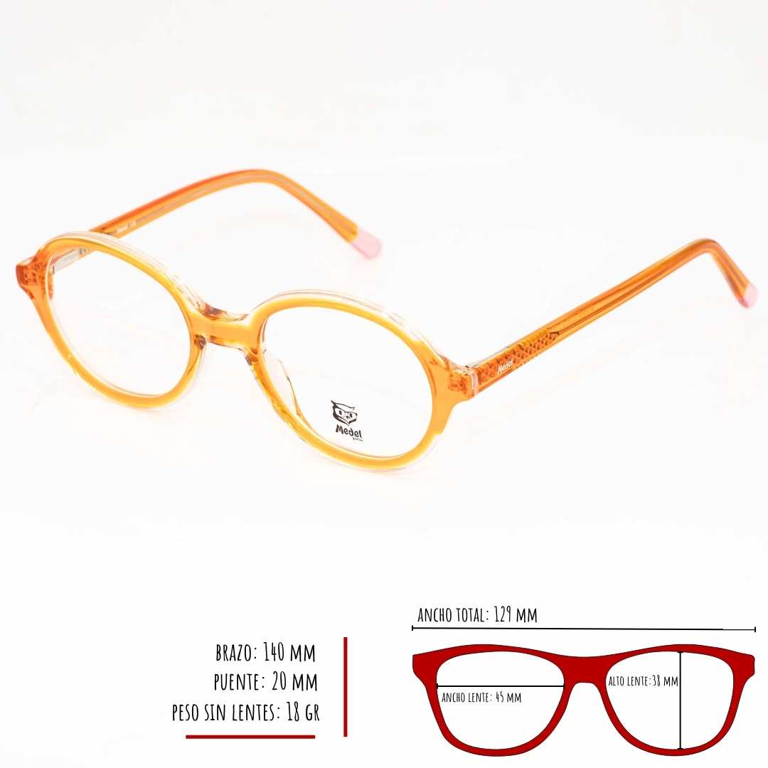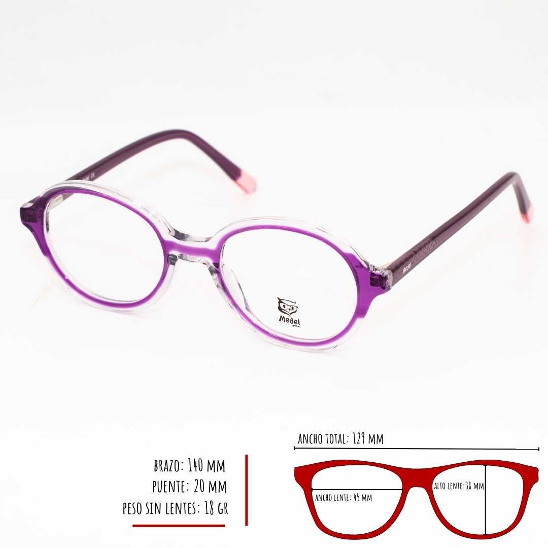 Volver a la tiendaMontura marca MEDEL, material acetato, bisagras con sistema flex de muy buenas calidad, ideal para lentes formulados, tamaño pequeño, medidas 49-19-140