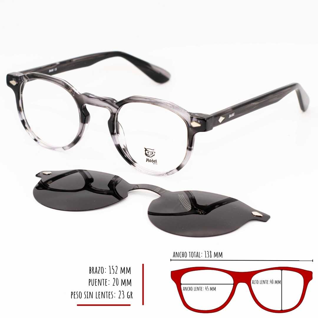 Volver a la tiendaMontura marca MEDEL, CLIP-ON lentes sobrepuesto negros polarizados ideal para protección del sol, material acetato, bisagras fijas de excelente calidad, ideal para lentes formulados, tamaño mediano 47-23-145